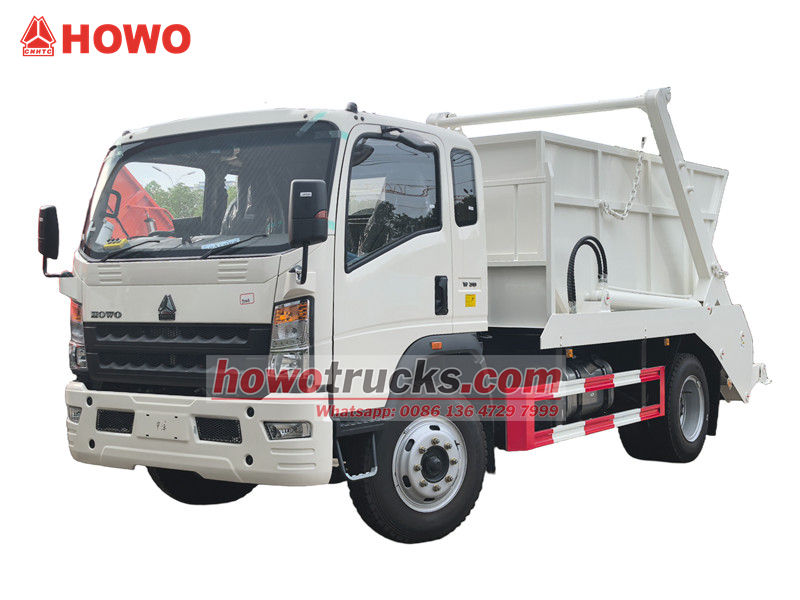 Smetiarske auto HOWO 4x2 RHD s otočným ramenom, nazývané aj kontajnerové auto HOWO, kontajnerové auto HOWO 4x2, kontajnerové auto HOWO 6cbm, kontajnerové auto HOWO RHD atď.