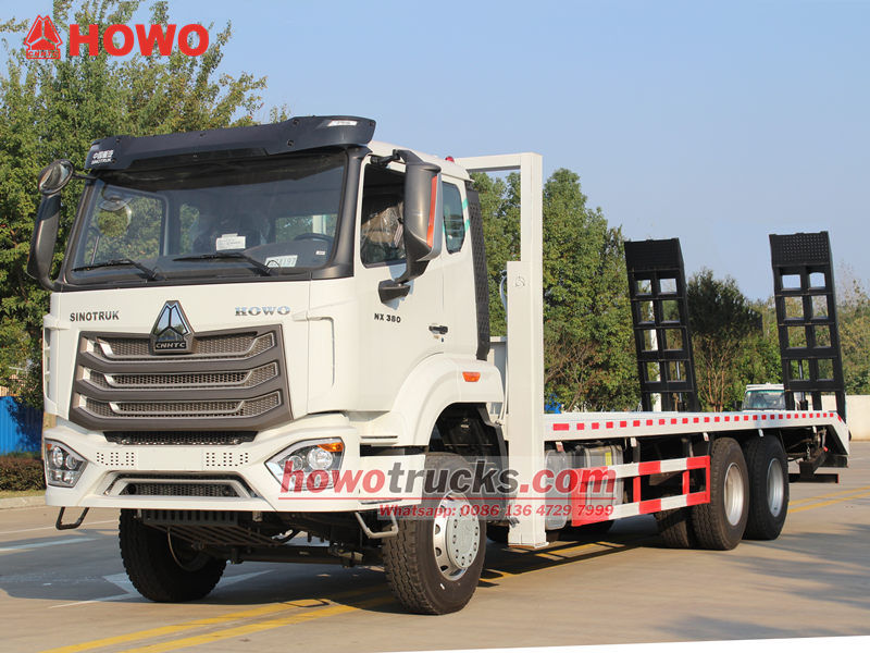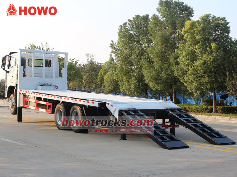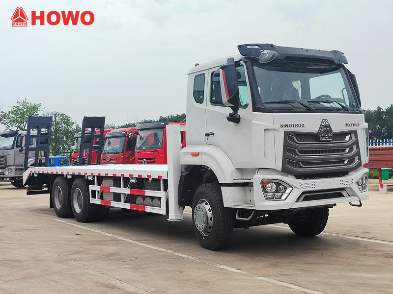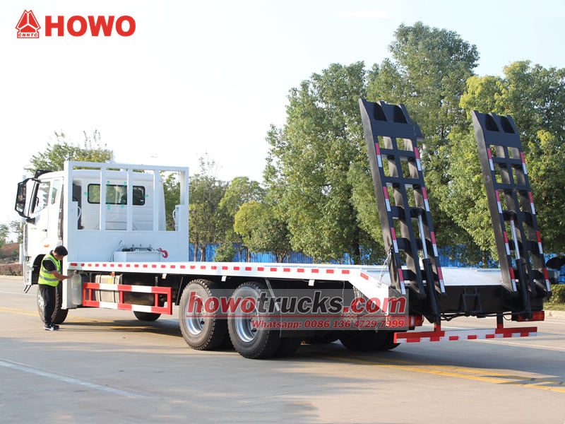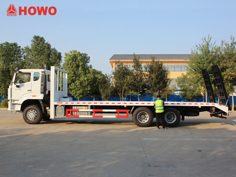 Ťažký plošinový samonakladač HOWO 6x4 je špecializované vozidlo určené na prepravu veľkých strojov a zariadení, stavebných vozidiel a neoddeliteľného nákladu. Jeho nízkopodlažná konštrukcia poskytuje dostatok ložného priestoru a vysokú nosnosť, čím ľahko spĺňa prepravné potreby stavebných strojov, ako sú bagre a buldozéry.