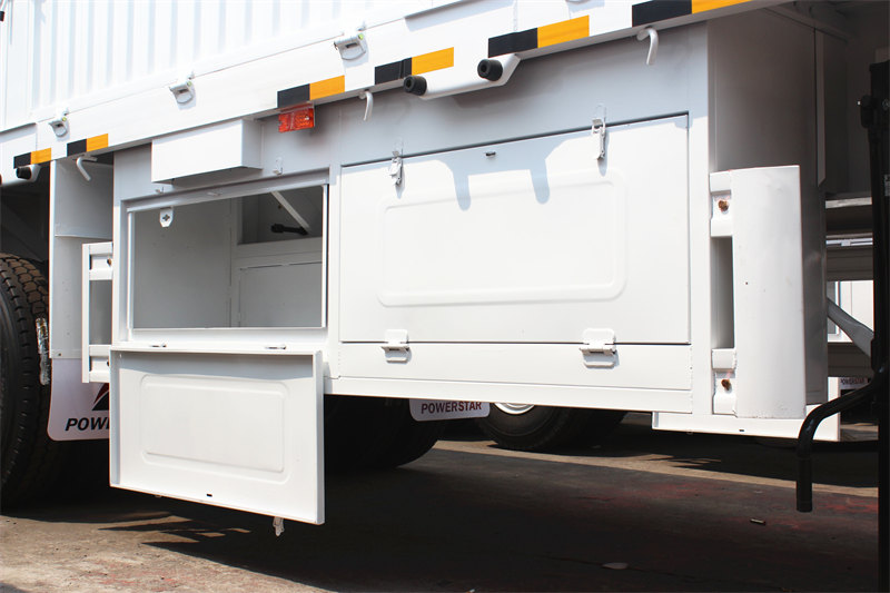 CS TRUCKS trojnápravový náves s bočnou plachtou sa široko používa na strednodobú až diaľkovú prepravu stredne ťažkého/ťažkého a sypkého nákladu s menovitou nosnosťou až 45 ton, vďaka čomu je veľmi všestranný. Nosníky podvozku sú vyrobené z vysokopevnostnej ocele Q345B a je vybavený tromi 13-tonovými nápravami FUWA a dvanástimi pneumatikami 12R22.5. Stal sa preferovanou voľbou pre vozidlá na strednodobú a diaľkovú nákladnú dopravu.