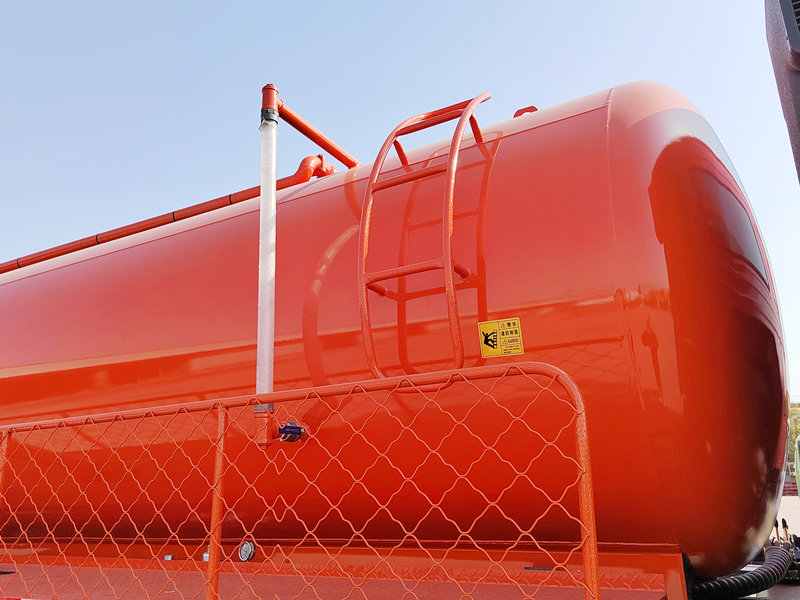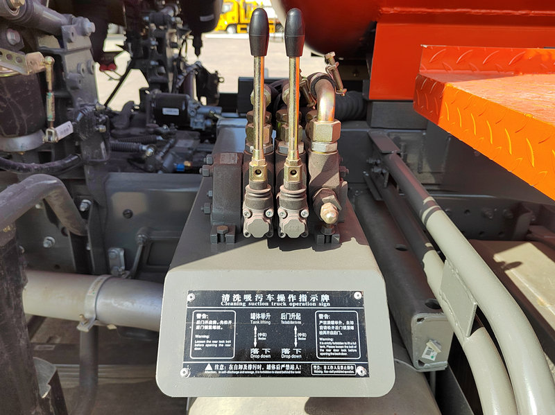 ●Vozidlo je vybavené hydraulickým samovykladacím zariadením, ktoré nakláňa nádrž, aby umožnilo automatické vysypávanie kalu, čím sa zlepšuje účinnosť vykladania. Celá prevádzka je uzavretá a bez znečistenia, čo zaisťuje bezpečnú a efektívnu prevádzku.
