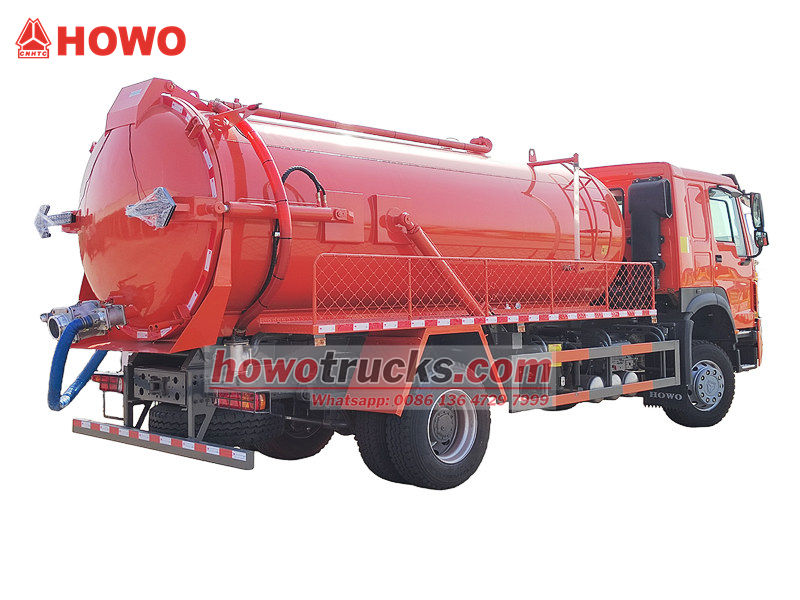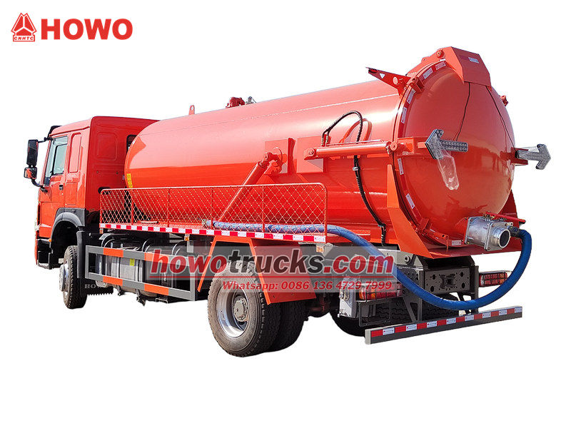 Sacie vozidlo na odpadovú vodu Howo s výkonom 300 HP (tiež nazývané septik Howo 10 000 litrov s jednou nápravou, vákuové sacie vozidlo na odpadové vody Howo 4x2, cisterna na likvidáciu odpadových vôd Howo 300 hp, vákuové sacie čerpadlo Howo 10 cbm, vákuová cisterna Howo 10 000 litrov, septik Howo 10 cbm, vákuové sacie vozidlo HOWO 4x2 10 cbm atď.) Používa sa na zhromažďovanie, prepravu a vypúšťanie kvapalín, ako je znečistená voda, kal, septik. Telo nádrže bolo ošetrené antikoróznou a antikoróznou úpravou a je mimoriadne odolné. V kombinácii s vysokovýkonným vákuovým čerpadlom má silné sanie a je nepostrádateľným profesionálnym vybavením v mestskej a vidieckej environmentálnej správe.