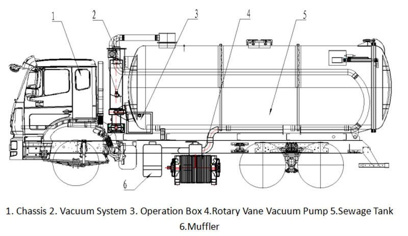 --- Zloženie a funkcie cisternového vozidla na odpadové vody Howo 10-Wheeler