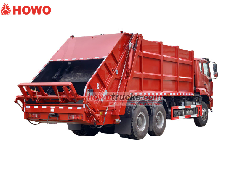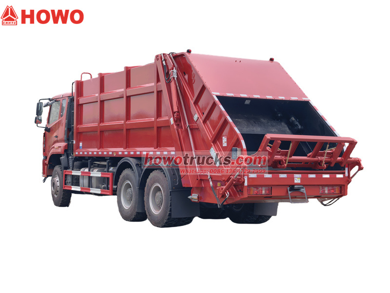6×6, RHD drive is optionalTen/Tá/To Howo NX ťažký odpadkový kamión so zadným zhutňovačom je vynikajúce dielo v oblasti mestského čistenia. Je vybavené motorom WD615.47, má výkon 371 koní, objem 9,726 litra a technológiu preplňovania turbodúchadlom a medzichladenia. Je nielen výkonný, ale spĺňa aj prísne emisné normy Euro 6. Jeho celková hmotnosť 33 ton a nosnosť 20 ton plne uspokoja denné potreby odvozu odpadu vo veľkých a stredne veľkých mestách.