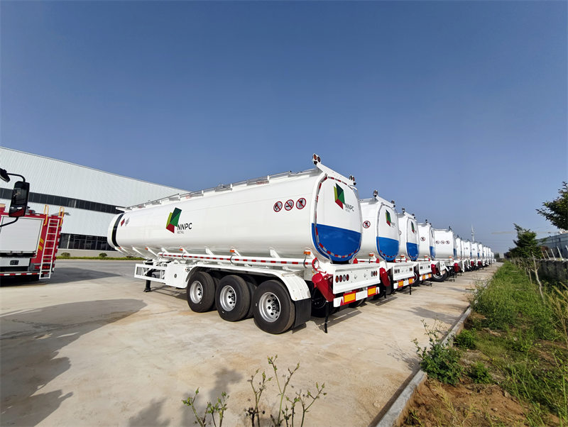 Nový 3-nápravový 40000L Cisterna na palivo je vyrobená z materiálu Q370R, má konštrukčný tlak 1,61 MPa a hrúbku plášťa a koncovej dosky 8,0 mm, čo spĺňa najnovšie výrobné normy. Je vybavená rôznymi poistnými ventilmi, hladinomermi, tlakomermi a ďalšími komponentmi na zaistenie bezpečnosti počas prepravy. Okrem toho je vybavená mostíkmi BPW, trakčnými čapmi JOST, nohami JOST a ďalšími konfiguráciami, ktoré dokážu splniť prepravné potreby v rôznych prostrediach a cestných podmienkach. Ide o vysoko výkonnú a bezpečnú mobilnú cisternu na naftu.