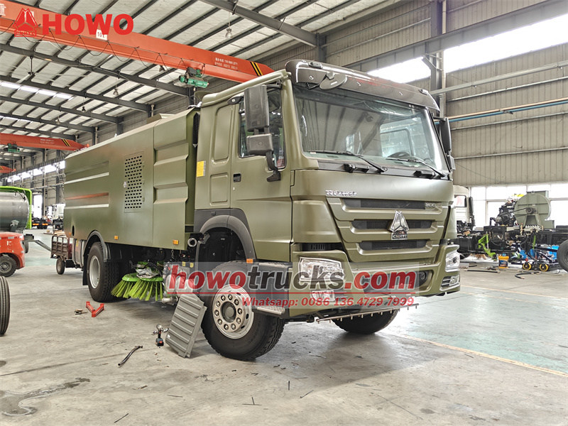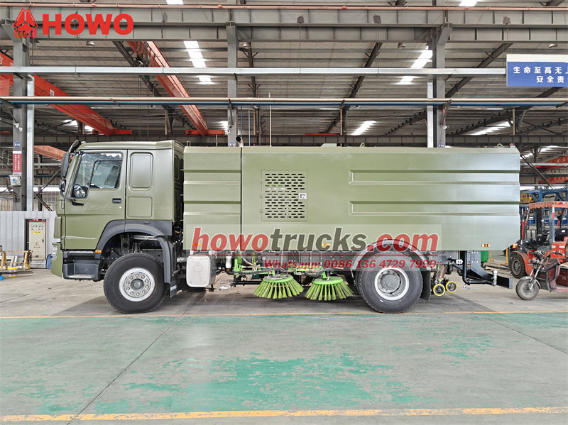 Zametacie vozidlo HOWO s objemom 12 cbm je upravené na základe podvozku kabíny HOWO HW76. Má rázvor 4600 mm a je vybavené motorom Weichai WP10.300E22, prevodovkou Sinotruk HW19710, nádržou na vodu z uhlíkovej ocele s objemom 4000 l, vnútornými a vonkajšími odpadkovými košmi z nehrdzavejúcej ocele s objemom 8000 l a pomocným motorom Dongfeng Cummins B140 33. Vozidlo je vybavené štyrmi zametacími kefami a prísavkou, dúchadlom Weiye, vysokotlakovým piestovým čerpadlom Nemecko PINFL PF36 (1150 ot./min.) a nízkotlakovým vodným čerpadlom Hangzhou Weilong 60/90 (60 m).³/h). Pred kabínou sa nachádza viacero preplachovacích trysiek a pred zametacou kefou rozprašovacia tryska. Šírka preplachovania vysokotlakovou vodou je 2,5 m, šírka zametania zametacej kefy je 3,5 m a maximálna zametacia kapacita je 60 000 m³/h. Rýchlosť zametania je 3 – 20 km/h. Vozidlo je ovládané elektronickou ovládacou skrinkou v kabíne a ovládacou skrinkou na sacom potrubí.