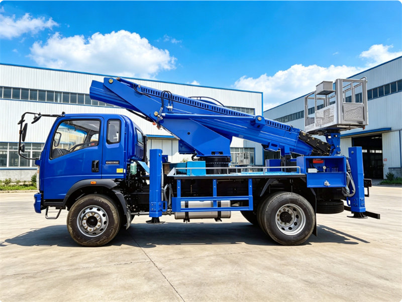 As a professional engineering vehicle, the Howo 18-meter articulated platform aerial truck is designed to combine reliable technical performance with comprehensive safety protection, making it suitable for various high-altitude operation scenarios. In terms of basic chassis and power configuration, the truck adopts the Howo all-wheel drive chassis, which lays a solid foundation for its flexible operation in complex road conditions. Equipped with an ISF3.8S3154 engine, it can output a maximum power of 154 horsepower.