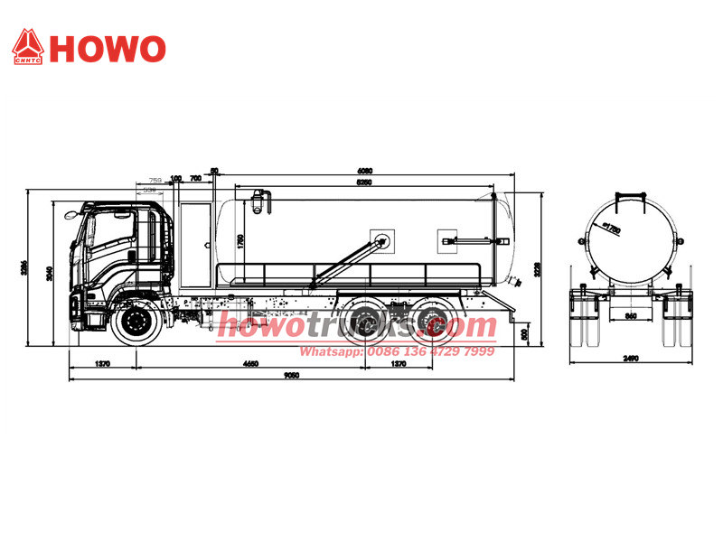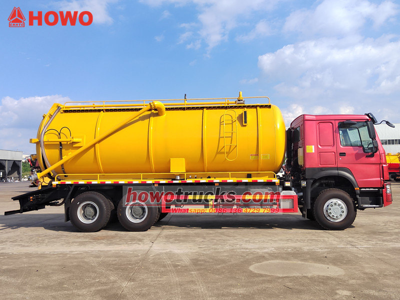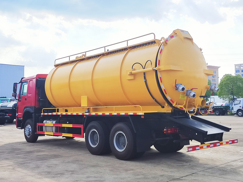 Vysávač kanalizácie HOWO je postavený na podvozku SINOTRUK HOWO 6×4 a má 20-kubíkovú nádrž z uhlíkovej ocele spárovanú s talianskym vákuovým čerpadlom Jurop, ktoré je schopné generovať 93 % vysokú úroveň vákua. Vozidlo je poháňané motorom Weichai s výkonom 400 koní a 10-stupňovou prevodovkou, vybavené hydraulicky uzamykateľným zadným krytom, alarmom proti preplneniu a 10-metrovou sacou hadicou. Je špeciálne navrhnutý na prepravu veľkého množstva odpadu v riečnych korytách a mestských potrubných sieťach.