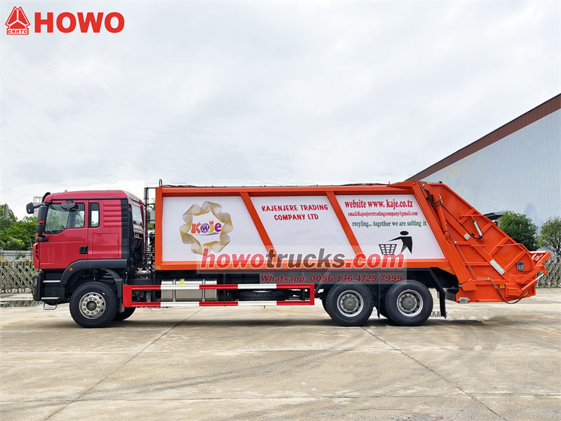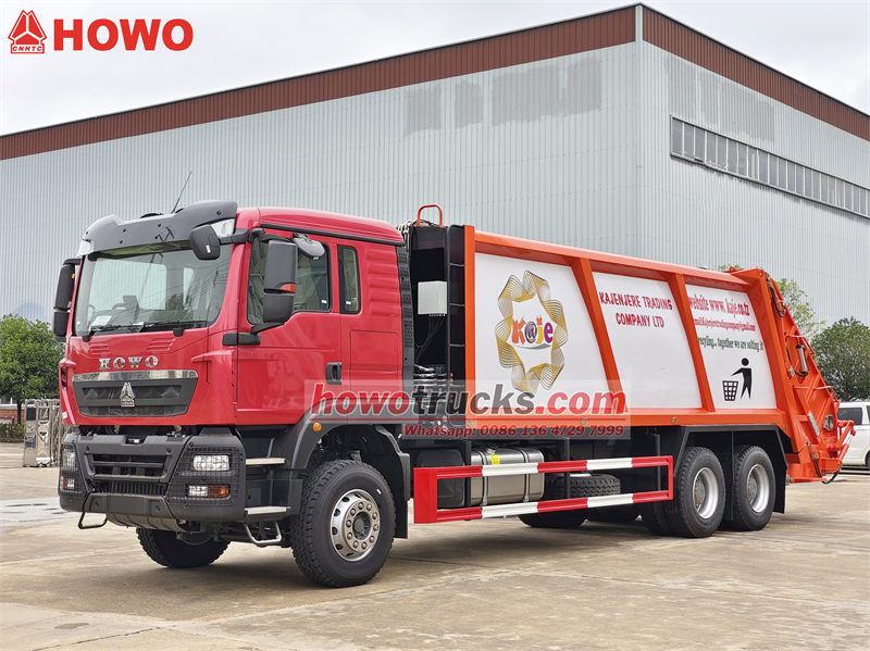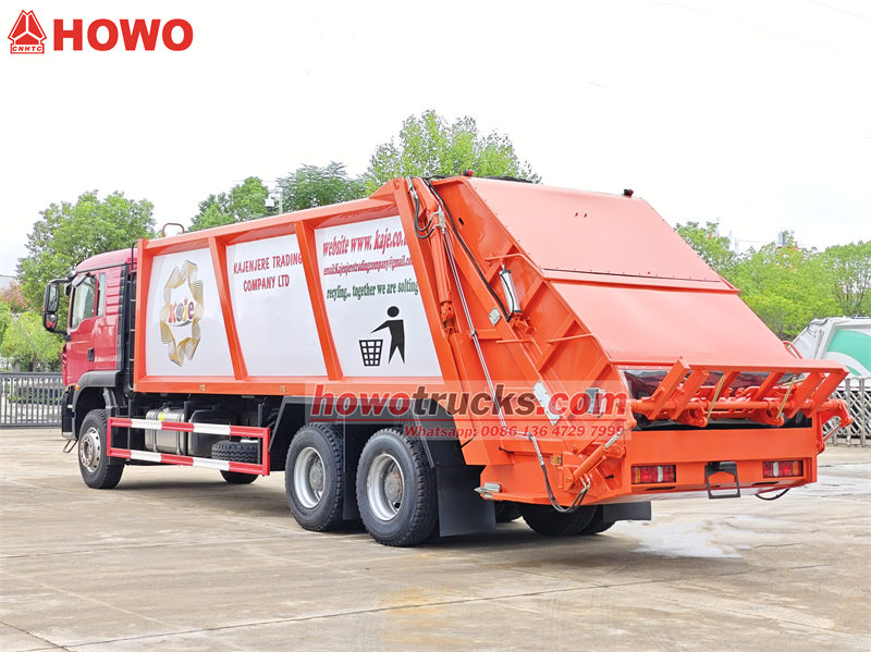 Nákladné autá na zhutňovanie odpadu HOWO s objemom 20 cbm pripravené na prepravu do Afriky