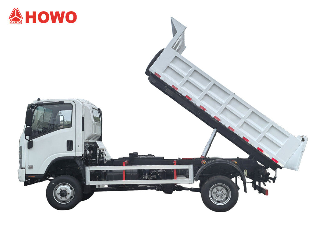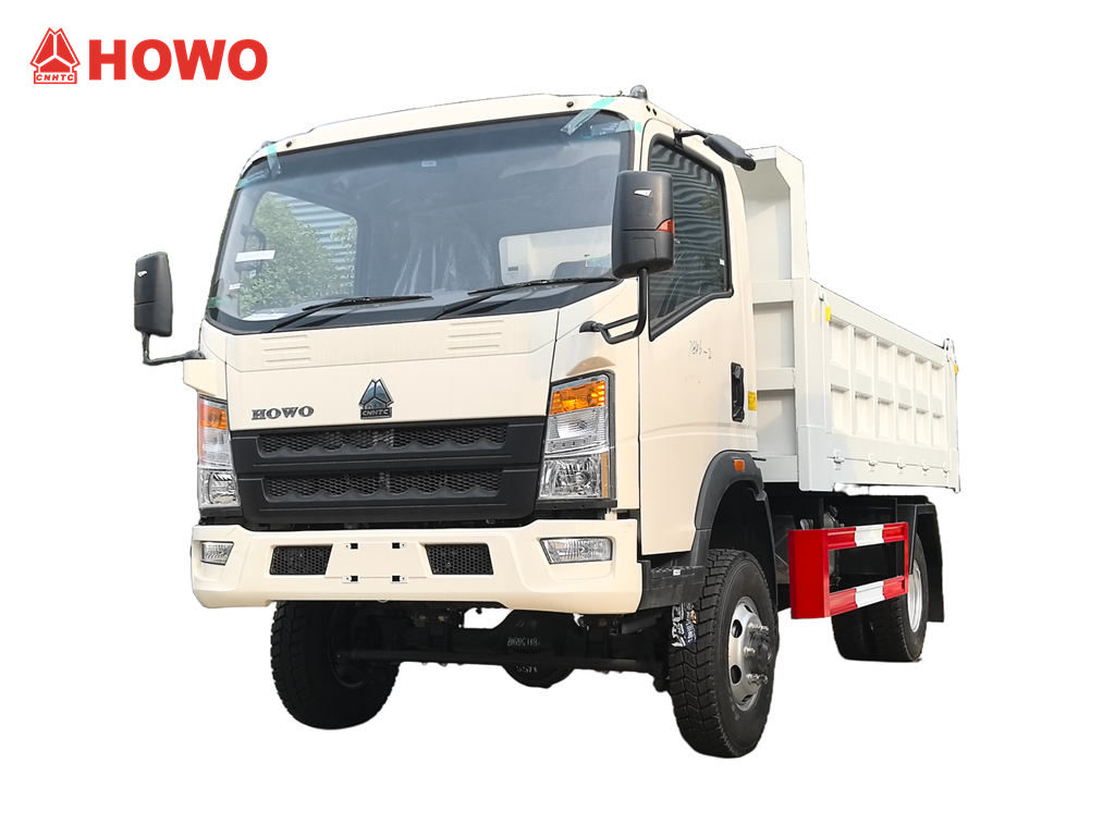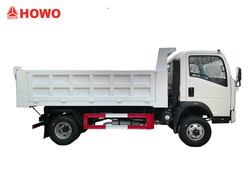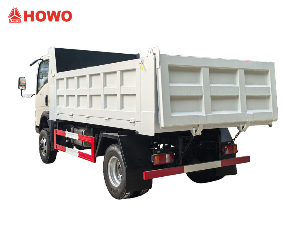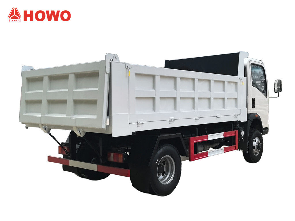 Terénny mini sklápač Howo 3 Ton je upravený na základe podvozku ľahkého nákladného vozidla HOWO 4x4 RHD s rázvorom 3360 mm, je vybavený dieselovým motorom YN4102QBZL 116hp, 6-stupňovou prevodovkou WLY6TS55C a sklápacou skriňou vyrobenou z uhlíkovej ocele s tromi stranami a štyrmi dnami, s rozmermi 3550 × 2100 × 550 mm, centrálnym zdvíhaním, stabilným zdvíhaním, čistým a rýchlym vykladaním, otvárateľnými zadnými dverami a vozidlom je ovládané ovládacím ventilom na strane vodiča, čo sa ľahko ovláda.