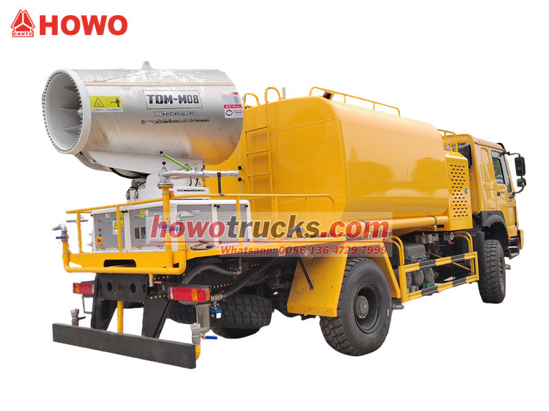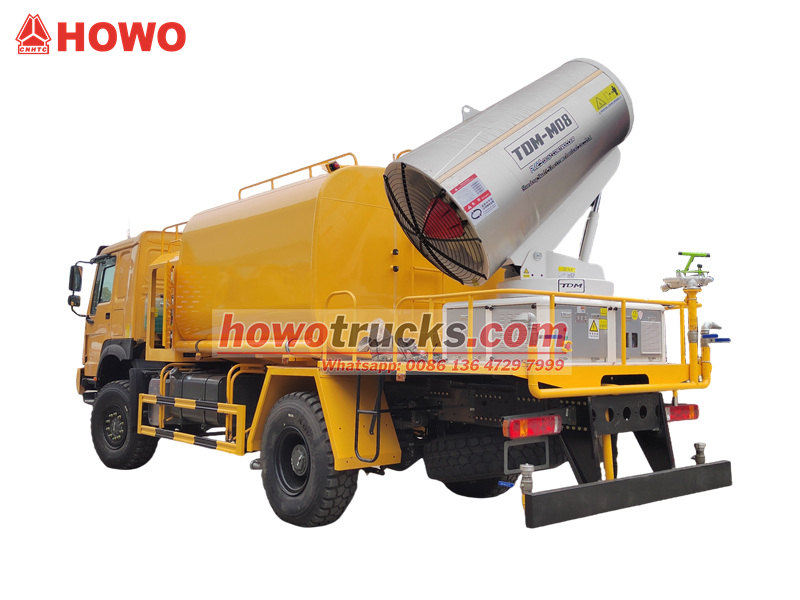 Vodné delo HOWO 4×4 je postavené na podvozku HOWO s pohonom všetkých kolies, je vybavené motorom s výkonom 300 HP a systémom pohonu 4×4, čo poskytuje vynikajúci výkon v zložitom teréne. Vďaka ultra dlhému dosahu 80 metrov s 90 tryskami dokáže rozprašovať jemnú vodnú hmlu (20 – 200 μm) s maximálnou plochou pokrytia 20 000 m². V kombinácii s veľkokapacitnou 10 000-litrovou vodnou nádržou a vysokotlakovým postrekovacím systémom efektívne vykonáva úlohy, ako je redukcia prašnosti na cestách, potláčanie prašnosti na staveniskách a poľnohospodárske postrekovanie. Je obzvlášť vhodné na kontrolu prašnosti v banských oblastiach, prístavoch, ochrane životného prostredia v mestách a iných oblastiach.
