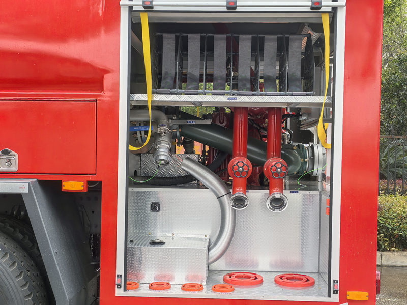 Hasičské auto HOWO 6×6 má 8000-litrovú nádrž na vodu a 2000-litrovú nádrž na penu z nehrdzavejúcej ocele. Je vybavené normálne tlakovým požiarnym čerpadlom CB10/60 a požiarnym delom PL48 s dosahom presahujúcim 70 metrov, čo umožňuje hasiť požiare aj počas jazdy. Usporiadanie miestnosti s čerpadlom je rozumné. Priestor pre vybavenie využíva rolovacie dvere z hliníkovej zliatiny a modulárnu pevnú konštrukciu. Terénne hasičské vozidlo HOWO Integruje vysokopevnostnú konštrukciu, účinný protipožiarny systém a užívateľsky prívetivý dizajn. Vyznačuje sa vynikajúcimi výsledkami v oblasti spoľahlivosti, prevádzkovej efektívnosti a prispôsobivosti prostrediu.