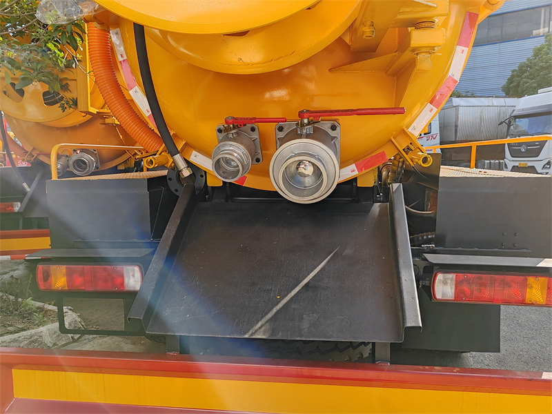 Keď je kombinované bagrovacie vozidlo HOWO 6X6 12cbm v prevádzke, najprv sa aktivuje vákuové čerpadlo, ktoré vytvára podtlak. Toto sacie potrubie nasáva odpadové vody a kal z potrubia alebo jamy do nádrže na odpadové vody. Odlučovač vodnej pary zabraňuje vniknutiu vody do čerpadla, čím zabezpečuje stabilitu systému. Keď je nádrž na odpadové vody plná alebo je potrebné ju vyčistiť, otvorí sa vypúšťací ventil, aby sa odpad vypustil. Počas fázy vysokotlakového čistenia dodáva nádrž na čistú vodu vodu do vysokotlakového čerpadla. Po natlakovaní sa cez navíjaciu hadicu strieka prúd vody pod vysokým tlakom, ktorý narazí na upchatie a vyčistí potrubie. Hydraulický systém vozidla riadi koordinovanú prevádzku rôznych komponentov, zatiaľ čo podvozok s pohonom všetkých kolies 6X6 poskytuje stabilnú podporu výkonu, čím zabezpečuje efektívne dokončenie integrovaných sacích, odvodňovacích a preplachovacích operácií v zložitom teréne a dokončuje celý proces údržby potrubia.
