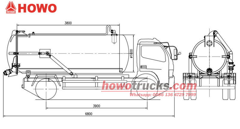 Telo sacej cisterny Howo s objemom 8 cbm sa skladá z vákuovej sacej nádrže, vákuového čerpadla, potrubného systému a ovládacieho zariadenia, ktoré sa vyznačujú silným saním a vynikajúcim tesnením. Táto horná konštrukcia dokáže rýchlo nasávať, uskladňovať, prepravovať a vypúšťať odpadovú vodu, čím zabraňuje sekundárnemu znečisteniu. Telo nádrže je vyrobené z vysoko kvalitnej uhlíkovej ocele, je odolné voči korózii, má veľkú kapacitu a je vhodné na komunálnu hygienu, správu komunitných nehnuteľností a čistenie odpadových vôd z tovární. Je ľahko ovládateľné, bezpečné a efektívne.