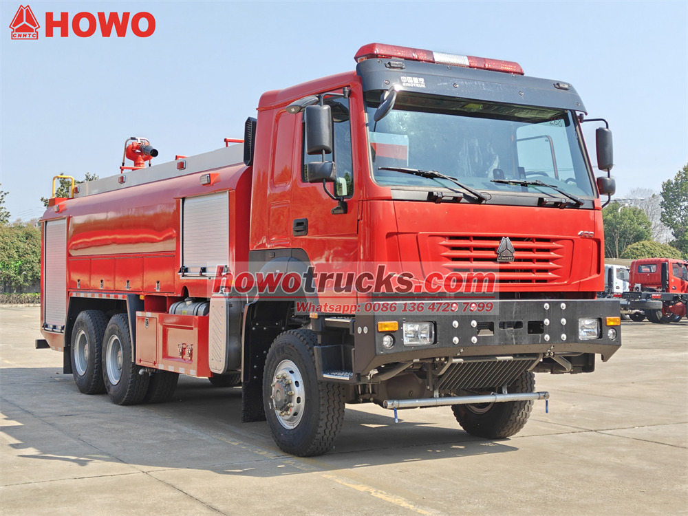 The Terénny hasičský vagón Howo používa ťažký podvozok Sinotruk s pohonom 6x6. Je vybavený...WP12S400 E201 motor s menovitým výkonom 400 konských síl a manuálna prevodovka s 12 prevodovými stupňami vpred a 2 prevodovými stupňami vzad. Hasičské cisternové vozidlo Howo 6x6 má objem nádrže 8000 litrov vody a 1500 litrov peny a je vyrobené z kompozitného materiálu PP s antikoróznymi vlastnosťami. Na streche je nainštalovaný požiarny monitor s prietokom 45 l/s a dosahom viac ako 55 metrov.
