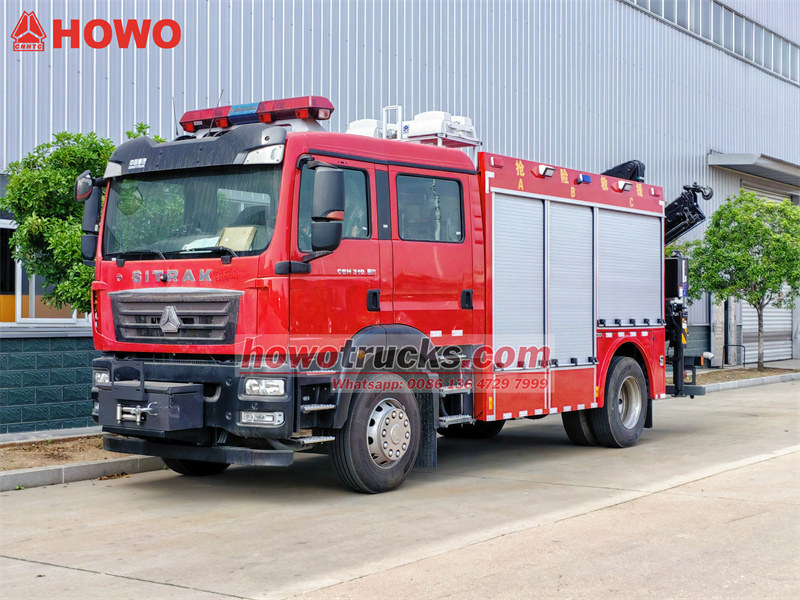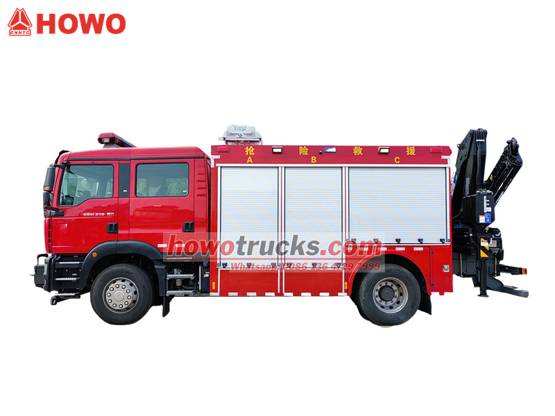 Hasičské vozidlo Howo s núdzovým osvetlením, postavené na prémiovom podvozku Howo C5H, kombinuje vynikajúci výkon s ekologickými emisiami. Vďaka pohonu všetkých kolies si poradí s akýmikoľvek náročnými podmienkami na cestách. Je vybavené nezávislým systémom výroby energie a systémom núdzového osvetlenia a poskytuje viacuhlové, všestranné osvetlenie pre rýchle osvetlenie záchranných ciest v prípade požiaru. Ovládací panel ponúka voliteľné jazyky a rôzne voliteľné konfigurácie, ktoré spĺňajú rôzne potreby. Hasičské vozidlo Howo je tiež vybavené 6-tonovým skladacím žeriavom v zadnej časti pre ťažké zdvíhanie. 3 ton, 35 m elektrické ťažné lano sa nachádza pred kabínou.