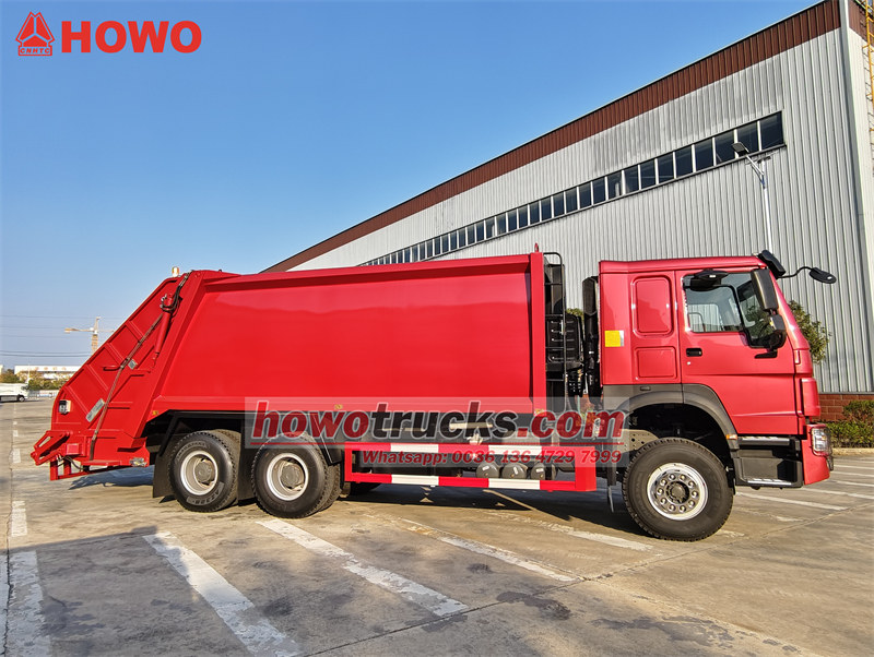 Ťažké vozidlo na zber odpadu Sinotruk HOWO so zadným nakladačom je špeciálne navrhnuté a vyrobené ťažké vozidlo na zber odpadu, ktoré je postavené na podvozku ťažkého nákladného vozidla HOWO 6×4, vybavené dieselovým motorom WEICHAI EURO 2 model WP10.380E22 s výkonom motora 280KW/380HP, vhodné pre africký trh. Ťažké vozidlo na zhutňovanie odpadu HOWO je vybavené cisternovou korbou s objemom 20 cbm, všetko je vyrobené z medzinárodného materiálu St52, čo zodpovedá materiálu Q355, s hrúbkou bokov a podlahy 5 mm. Je tiež možné ho prispôsobiť švédskej oceli HARDOX ako materiálu, ktorý je odolnejší a spoľahlivejší. Zadné sklápacie zariadenie pre zadné nakladače HOWO sú kontajnery s objemom 240 l a 1100 l, vhodné pre požiadavky etiópskeho trhu.