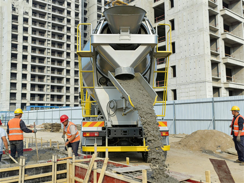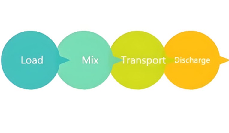 ▶ Preprava: Po zmiešaní betónu ho nákladné auto prepraví na stavenisko. Bubon sa počas prepravy otáča, aby sa zabránilo stuhnutiu betónu.