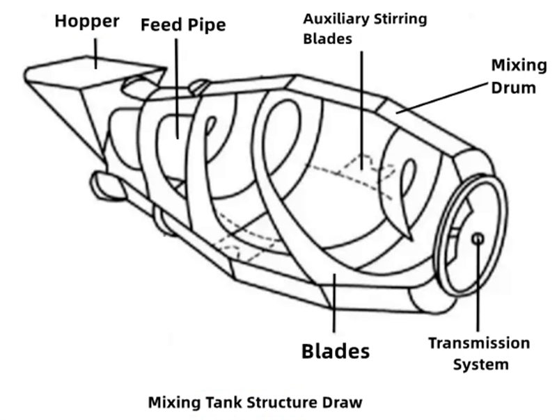2. Návrh vedeckej nádrže:Mangánová oceľ Q355 s dvojitou logaritmickou špirálovou krivkou zaisťuje homogenitu betónu, minimalizuje zvyšky a znižuje plytvanie materiálom.