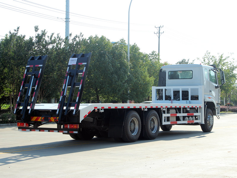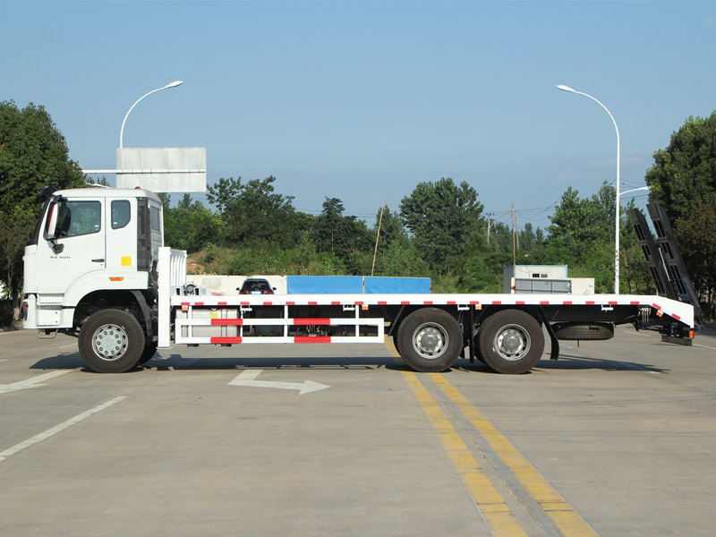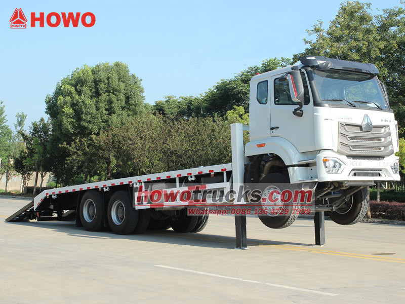 Toto Samonakladací nákladný automobil HOWO NX je vybavený profesionálnymi a výkonnými funkciami. Korba je vyrobená z 8 mm hrubých oceľových plechov s protišmykovým vzorom a rozmermi 8600 × 2500 mm, špeciálne navrhnutých na bezpečnú prepravu stredne veľkých rýpadiel a iného zariadenia. Zadná časť vozidla je vybavená dvoma 2 metre dlhými hydraulickými rampami, ktoré uľahčujú nakladanie a vykladanie strojov. Okrem toho dva predné zdvíhacie hydraulické výložníky, každý s nosnosťou 20 ton, výrazne zvyšujú stabilitu počas prevádzky na nerovnom teréne. V prednej časti je tiež nainštalovaný 4-tonový hydraulický navijak, ktorý je možné použiť na vyťahovanie alebo zabezpečovanie zariadení, čím komplexne spĺňa požiadavky filipínskych používateľov na všestrannosť a spoľahlivosť.
