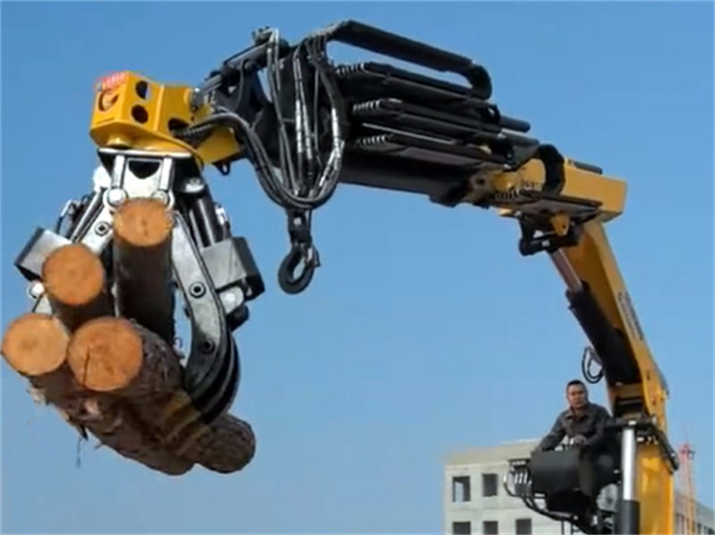 Žeriav je vybavený drapákom, čo zvyšuje jeho všestrannosť pri manipulácii s rôznymi druhmi materiálov. Či už ide o drevo, železný šrot alebo iné materiály, drapák ich dokáže efektívne zdvíhať, prepravovať a vykladať.