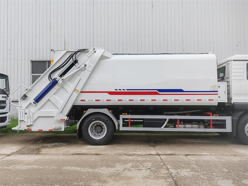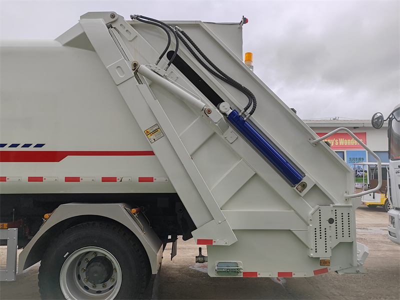 Ten/Tá/ToSmetiarske auto HOWO 4X2 16CBM s kompaktorom využíva technológiu obojsmerného zhutňovača so zadným plnením, ktorá umožňuje vysoko efektívnu koordináciu medzi procesmi zberu odpadu a kompresie. Počas prevádzky sa odpad nakladá do kontajnera cez zadný plniaci otvor. Po zatvorení plniaceho otvoru sa posuvná doska spustí a interaguje so škrabákom, čím sa vykoná počiatočné silné zhutnenie. Škrabák sa potom otáča dopredu, aby ďalej stlačil odpad, zdvihne ho a zatlačí do kontajnera. Súčasne sa tlačná doska pod tlakom zasunie, čím sa vytvorí obojsmerný kompresný efekt, ktorý zvyšuje nosnosť. Po zasunutí škrabáka je možné naložiť ďalší odpad a cyklus sa opakuje. Prostredníctvom viacerých cyklov horizontálneho kompresie a drvenia vo vnútri kontajnera sa objem odpadu výrazne zníži.