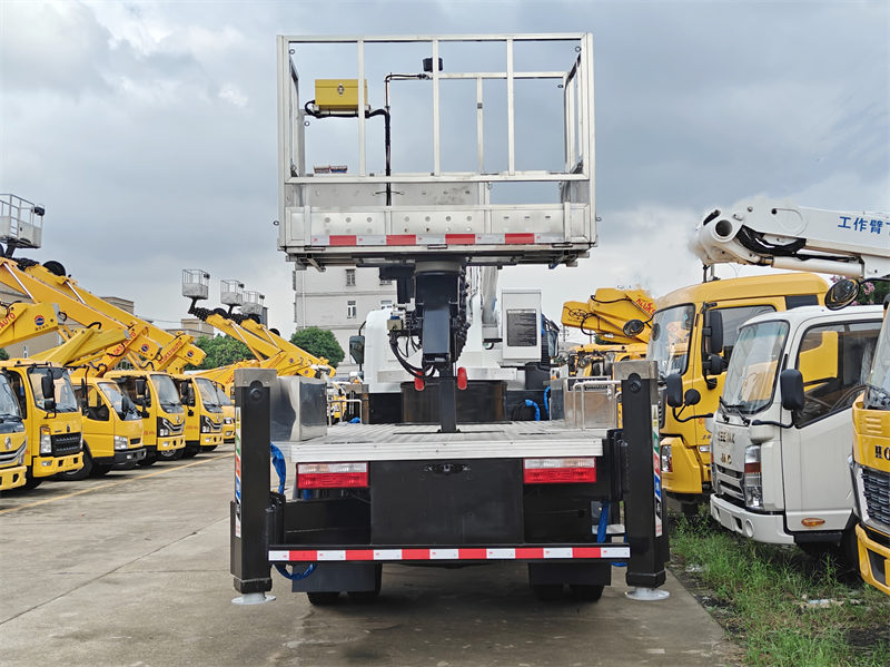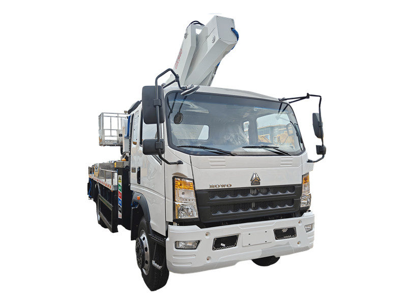 Plošinový nákladný automobil HOWO 22m je špecializovaný strojársky nákladný automobil, ktorý v sebe spája vynikajúci technický výkon a bezpečnostnú konštrukciu. Vozidlo je postavené na podvozku Howo s pohonom všetkých kolies a je vybavené motorom ISF3.8S3154 s maximálnym výkonom 154 koní a celkovou hmotnosťou vozidla 10 000 kg, čo zaisťuje flexibilnú a výkonnú ovládateľnosť. Ľahký vysokozdvižný vozík Howo s plošinou má maximálnu pracovnú výšku 22 metrov a maximálny prevádzkový rádius 12 metrov. Na zaistenie stability využíva hydraulický statický vyvažovací systém. Jeho unikátna konštrukcia hydraulických výložníkov v tvare H s obojsmerným hydraulickým blokovacím mechanizmom zaisťuje stabilitu počas prevádzky. Ľahký vysokozdvižný vozík Howo je tiež vybavený dvojitým manuálnym a bezdrôtovým diaľkovým ovládaním. Plošina má menovitú nosnosť 200 kg, hydraulické otáčanie o 360° a viacero vstavaných bezpečnostných prvkov vrátane automatického ovládania mimo vymedzeného priestoru, núdzového zastavenia a zariadenia na ochranu pred únikom.