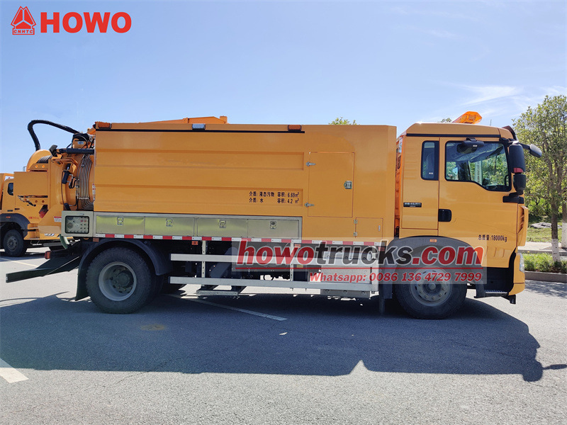 Kombinovaný bagrovací nákladný automobil HOWO 4x2 11cbm je upravený na základe polokabínového podvozku HOWO TX 2280. Má rázvor 4500 mm a je vybavený motorom Sinotruk MC07.31-60 a 6-stupňovou prevodovkou. Je vybavený nádržou na odpadovú vodu s objemom 6,7 cbm a nádržou na čistú vodu s objemom 4,2 cbm vyrobenou z 5 mm hrubej uhlíkovej ocele. Na oboch stranách telesa nádrže sa nachádzajú skrinky na náradie a jedna strana je vybavená ovládacou skrinkou, navijakom zadných dverí, vypúšťacím ventilom, rebríkom, priezorom atď. Je vybavený vákuovou pumpou Jurop PVT400 a vysokotlakovým čistiacim čerpadlom 3N2-SZ.