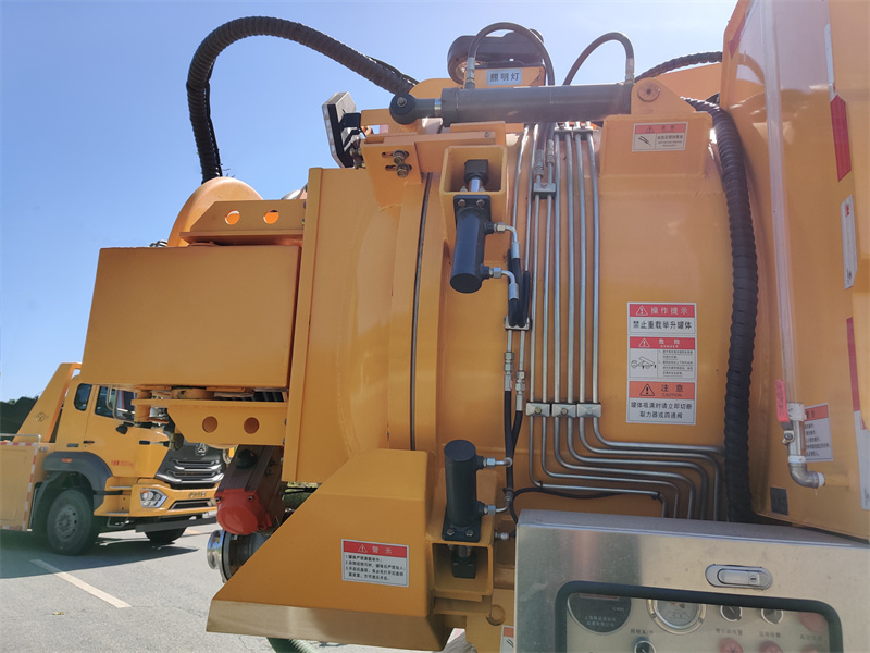 1. Systém vákuového odsávania: Vákuové čerpadlo Jurop PVT400 vytvára podtlak, ktorý je potom nasávaný do 6,7 kubických metrov kubickej nádrže z uhlíkovej ocele pomocou sacieho ramena. Na vrchu nádrže je nainštalovaný prepúšťací ventil, ktorý automaticky spustí alarm pretečenia a uzavrie sací otvor, aby sa zabránilo spätnému toku. Sacie rameno je hydraulicky nastaviteľné na zdvíhanie, zasúvanie a otáčanie, aby sa prispôsobilo rôznym prevádzkovým polohám.