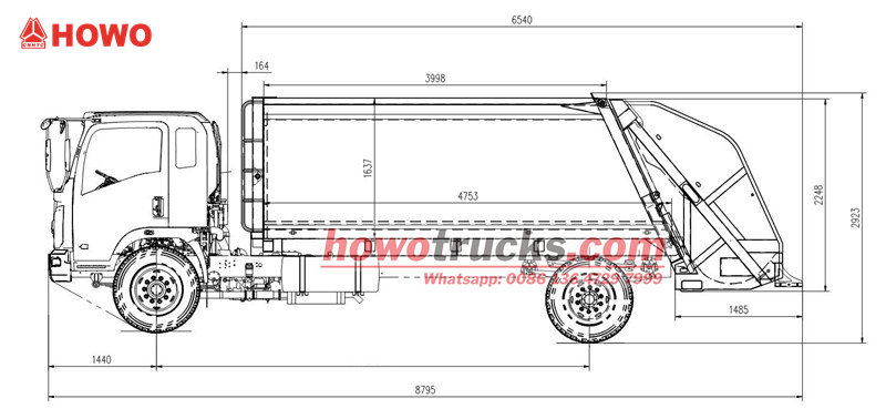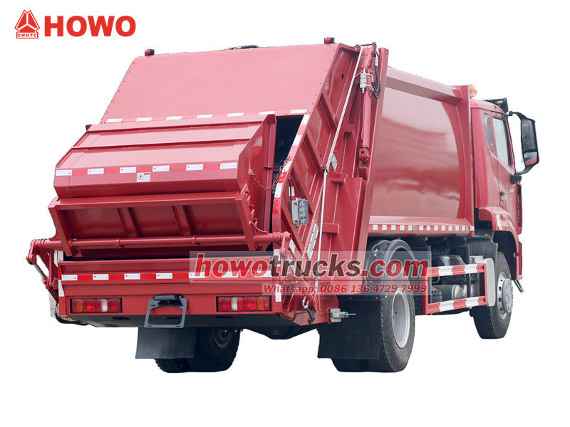 PLC control systemZadný nakladač na odpad Howo má utesnenú karosériu vyrobenú z vysokopevnostnej ocele, ktorá je spojená s pokročilým hydraulickým kompresným systémom, ktorý výrazne stláča sypký odpad, čím výrazne zvyšuje kapacitu jednej jazdy.