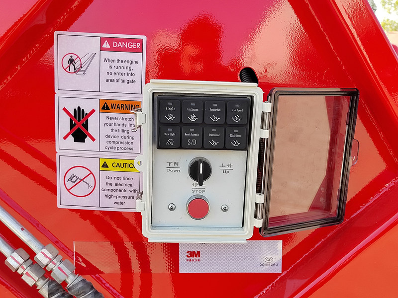 ►Zabezpečené je pohodlné ovládanie a obsluha. Ovládacie skrinky sa nachádzajú v kabíne aj v zadnej časti vozidla. Ovládacia skrinka v kabíne riadi proces tlačenia a vykladania a umožňuje výber prevádzkových režimov (automatický alebo manuálny), zatiaľ čo zadná ovládacia skrinka riadi mechanizmy zhutňovania a sklápania. Obsluha je mimoriadne pohodlná.
