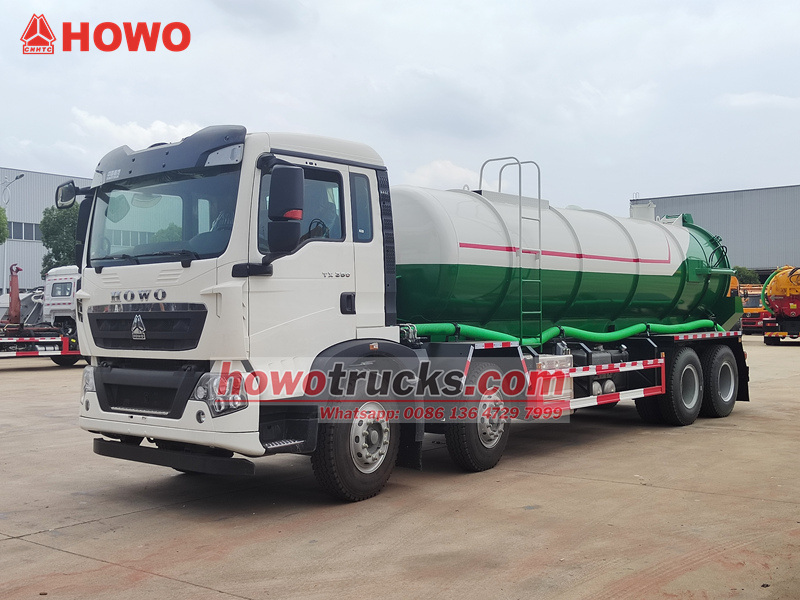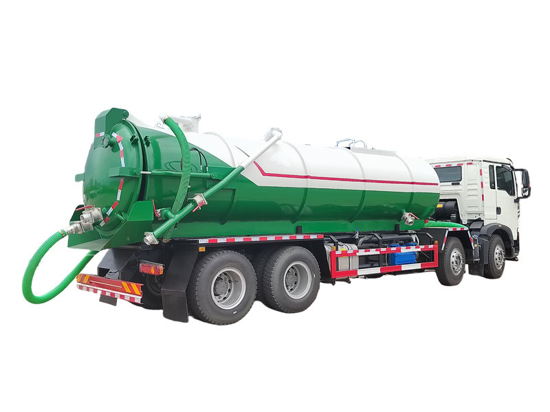 17500Cisternové vozidlo HOWO TX 25000L je špecializované sanitačné vozidlo určené na efektívne odsávanie, prepravu a likvidáciu tekutého odpadu a kalov. Je postavené na ťažkotonážnom podvozku HOWO TX 8×4 a je poháňané motorom s výkonom 350 koní a 10-stupňovou prevodovkou HW19710, ktoré sú spojené s veľkou 400-litrovou palivovou nádržou. Nadstavba obsahuje 25-kubíkovú vákuovú nádrž vyrobenú z vysoko kvalitnej uhlíkovej ocele s hrúbkou 6 mm, integrovanú s vodokružným vákuovým čerpadlom SK-20, ktoré je schopné dosiahnuť maximálny sací výkon 20 m³/min a maximálnu úroveň vákua 8300 Pa, čo zaisťuje silné nasávanie a odolnosť proti korózii.