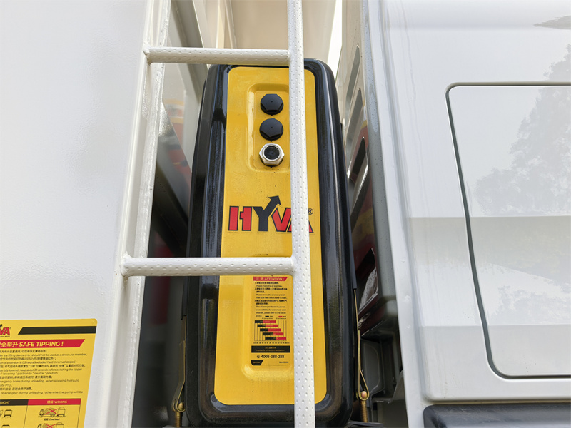 • Lifting System: Front-mounted Hyva hydraulic lifting mechanism with a lifting angle greater than 45°, ensuring clean and thorough unloading and smooth, powerful lifting.